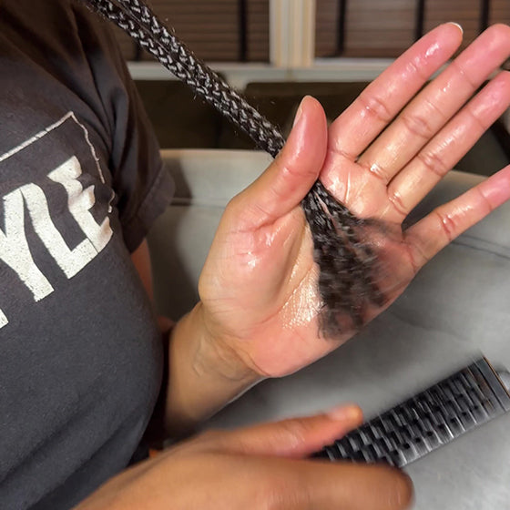 Spray a generous amount of detangler evenly over braids - to prevent tangles, don’t be shy!